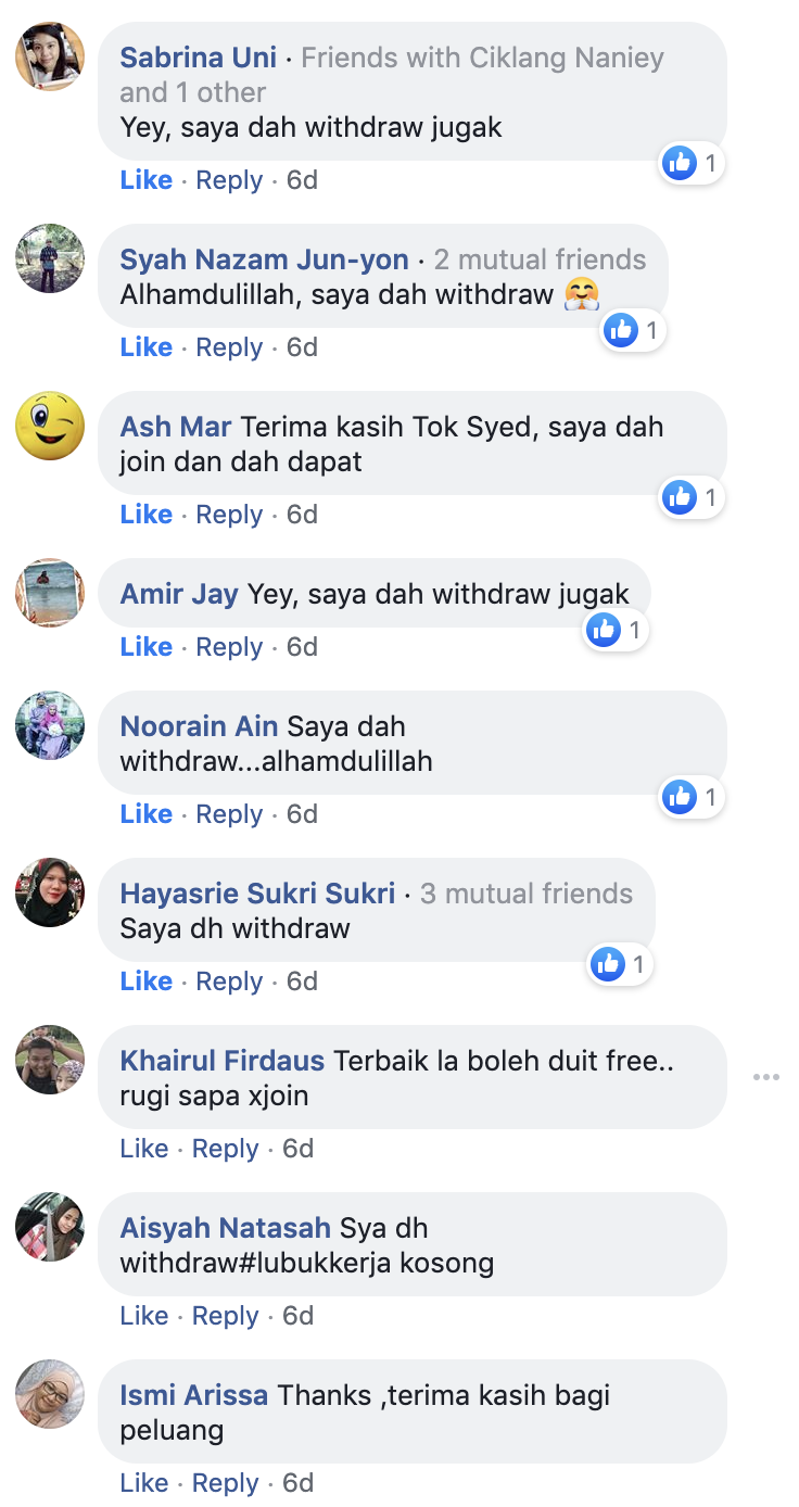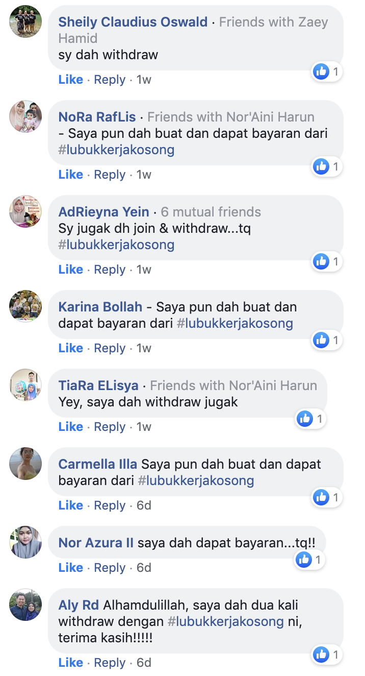 Sebaik sahaja anda melakukan pembayaran. Admin akan mengesahkan pembayaran anda dalam masa 24 jam. Kemudian anda akan diberikan Email access untuk download segera panduan-panduan khas yang kami sediakan (dalam bentuk ebook) di mana akan ditunjukkan satu tempat yang menyenaraikan platform-platform lubuk kerja-kerja kosong yang boleh dibuat on-the-spot oleh anda sendiri dan bayaran diberikan terus ke bank akaun atau akaun Paypal anda. Sudah ramai yang cashout dan withdraw hasil dari kerja-kerja yang telah diapproved oleh admin. Lihat di bawah ini: